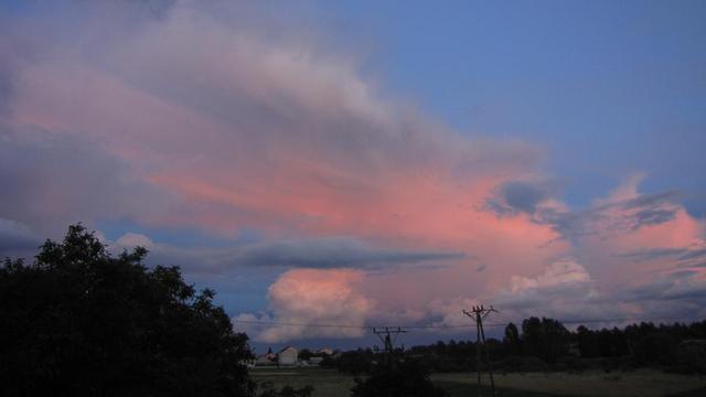 Widok z mojego okna na czerwonawe cumulusy i stratusy