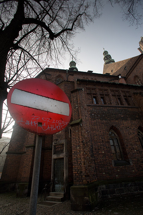 To ciekawe, zazwyczaj przy kościołach powinny być napisy: "Wstąp do kościoła", a tutaj "zakaz wejścia.....".