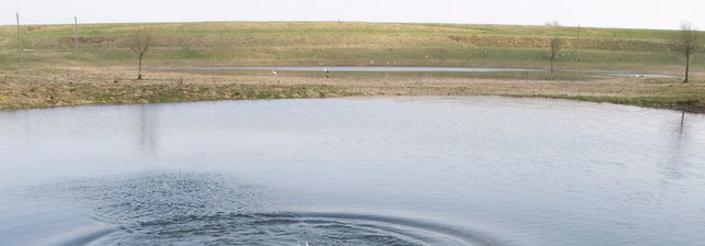 widok dwóch stawków na tle wału przeciwpowodziowego
