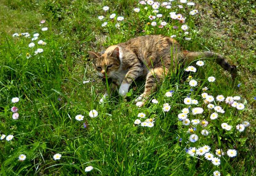 Chciałabym tak poleżeć w kwiatuszkach jak ten kot-)