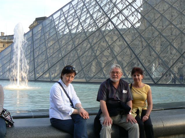 Na tle piramidy w Luwrze