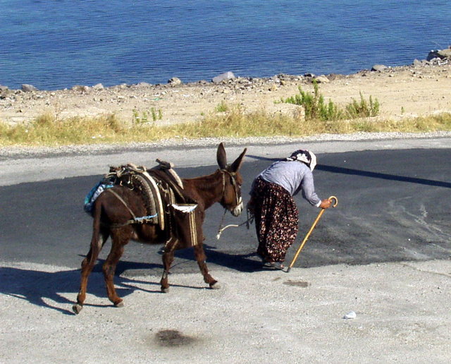Staruszka z osiołkiem