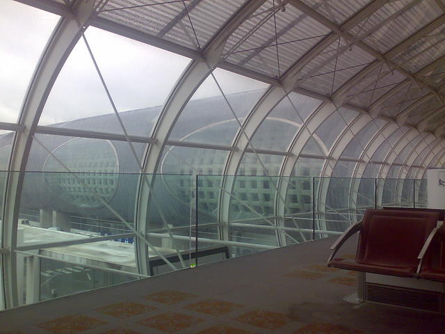 - Za oknem pada (mocno) a my siedzimy w srodku betonowej futurystycznej tuby. Nasz terminal 2 na Okęciu generalnie wysiada.