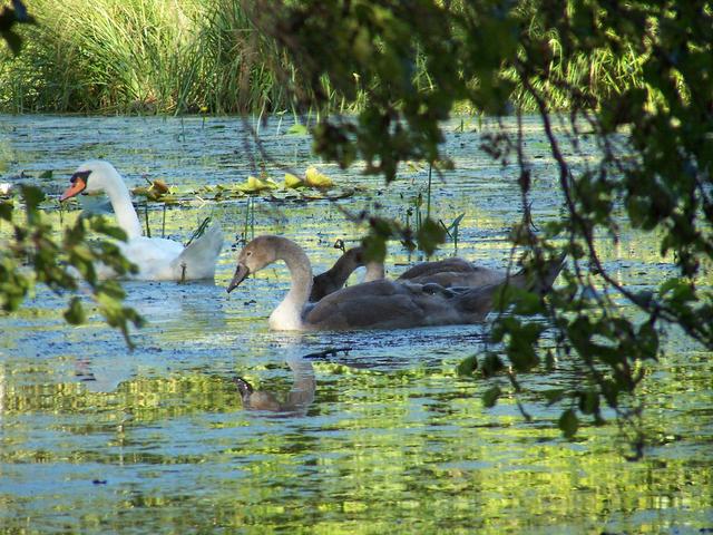 Łabędź niemy z młodymi