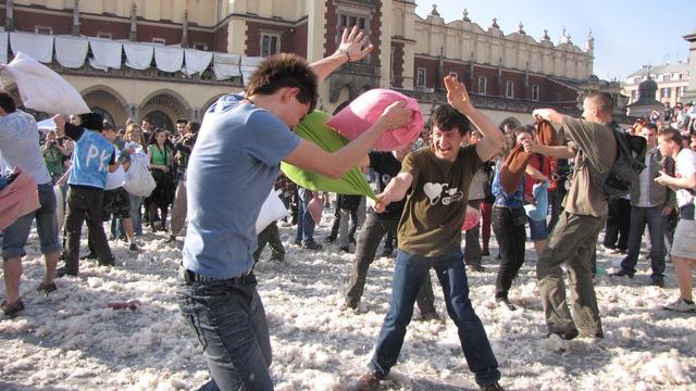 Nie wiem czy zaglądacie na... yhm... adresu nie podam, nazwy też... ale jest to niecodziennik satyryczny (wiadomo - powaga zabija powoli) ;) Tam właśnie była ogłaszana taka akcja - w Warszawie, 13 lutego o 13:13 rozpoczęła się wojna na poduszki :) Podobna akcja była w Gdańsku. Widziałem foty i filmiki, czytałem relacje. Impreza świetna, owszem. Tylko kto posprząta później te walające się wszędzie pióra? :P