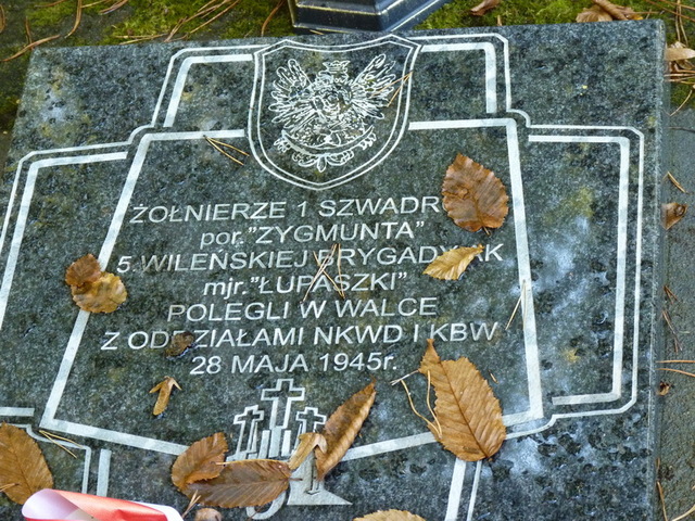 Zygmunt Edward Szendzielarz, ps. "Łupaszka" (1910-1951) był absolwentem Szkoły Podchorążych Kawalerii w Grudziądzu. Po promocji przydzielony został do 4 Pułku Ułanów Zaniemeńskich w Wilnie na stanowisko dowódcy plutonu. W okresie służby wojskowej brał udział w licznych zawodach hippicznych, zajmując wysokie miejsca. Uczestniczył w wojnie obronnej Polski 1939 roku, jako dowódca 2. szwadronu w 4 Pułku Ułanów Zaniemeńskich w składzie Wileńskiej Brygady Kawalerii pod dowództwem płk. dypl. Konstantego Druckiego-Lubeckiego. Przeszedł z pułkiem cały szlak bojowy, a później po jego rozbiciu walczył w kombinowanej Brygadzie Kawalerii pod dowództwem płk. Adama Zakrzewskiego , a następnie w składzie GO Kawalerii gen. Władysława Andersa. W końcu września 1939 roku dostał się do niewoli niemieckiej, z której wkrótce uciekł i przedostał się do Lwowa. Próbował dostać się przez Węgry do Francji, ale zamiar ten nie powiódł się. Wobec tego wrócił do Wilna, aby poprzez Litwę wyjechać za granicę. Po kilkukrotnych niepowodzeniach włączył się do pracy konspiracyjnej w Wilnie w ramach ZWZ-AK, przyjmując pseudonim "Łupaszko" (po słynnym zagończyku z okresu walk z bolszewikami w latach 1919-1920 ppłk. Jerzym Dąbrowskim). Komenda Okręgu Wileńskiego AK, która w 1943 roku oddelegowała go na dowódcę do pierwszego oddziału partyzanckiego AK na Wileńszczyźnie dowodzonego wcześniej przez ppor. Antoniego Burzyńskiego ps. "Kmicic", rozbrojonego i zamordowanego przez partyzantów sowieckich. Oddział por. Szendzielarza przyjął nazwę 5 Wileńskiej Brygady AK, zwanej też nieoficjalnie "Brygadą Śmierci". Operowała ona na terenie na płn.-wsch. od Wilna. Prowadziła walki zarówno z Niemcami i ich litewskimi sojusznikami, jak też partyzantką sowiecką. Na przełomie czerwca i lipca 1944 roku rozpoczęto wykonywanie akcji "Burza", której ostatnim akordem miało być opanowanie Wilna. Ostatecznie Brygada nie wzięła w nim udziału. W związku z zaistniałą sytuacją i dochodzącymi informacjami o tym, iż NKWD intensywnie poszukuje 5. Wileńskiej Brygady, "Łupaszka" dla zmylenia Sowietów nakazał zmianę dotychczasowej nazwy brygady i pseudonimów jej dowódców. Od tej pory w kontaktach z Armią Czerwoną oddział miał występować jako "Brygada Warszawska", która zmierza na swoje macierzyste tereny, a sam przyjął nowy pseudonim "Żelazny". Pod koniec lipca 1944 roku Brygada, manewrując między oddziałami niemieckimi i sowieckimi, przeszła w lasy Puszczy Grodzieńskiej. Tam została otoczona przez Sowietów. "Łupaszka", awansowany wcześniej na rotmistrza, rozkazał rozformować oddział, a żołnierzom wrócić do domu lub przebijać się małymi grupami na zachód, do Lasów Augustowskich. 20 września 1944 roku podporządkował się komendantowi Okręgu Białostockiego AK ppłk. Władysławowi Liniarskiemu ps. "Mścisław". Ten nakazał "Łupaszce" trwać w Puszczy Białowieskiej i organizować kadrowy oddział z rozbitków z nowogródzkich i wileńskich oddziałów AK. Na początku listopada 1944 roku do oddziału dołączył m.in. oficer BiP Okręgu Wileńskiego AK ppor. Lech Beynar ps. "Nowina", późniejszy znany publicysta i historyk, piszący pod pseudonimem literackim "Paweł Jasienica". 10 listopada rtm. Szendzielarz został awansowany przez ppłk. Liniarskiego do stopnia majora. Zimę przetrwał wraz z oddziałem na terenie Obwodu AK Bielsk Podlaski. Na przełomie stycznia i lutego 1945 roku ppłk. Liniarski mianował "Łupaszkę" komendantem partyzantki Okręgu Białostockiego AKO. Odtąd prowadzono walki z regularnymi oddziałami Armii Czerwonej i LWP, KBW, NKWD oraz grupami UB i MO. W pierwszych dniach września 1945 roku mjr Szendzielarz otrzymał rozkaz rozformowania oddziału, liczącego wówczas ok. 300 partyzantów, natomiast on sam podjął decyzję prowadzenia dalszej walki z komunistami. Dotarł do Gdańska i po nawiązaniu kontaktu z ostatnim komendantem Okręgu Wileńskiego AK-DSZ ppłk Antonim Olechnowiczem ps. "Pohorecki" w styczniu 1946 roku uzyskał zgodę na utworzenie większego oddziału bojowego. Powołał do życia 6 Brygadę Wileńską (rejon działalności – Białostockie i Podlasie) i odtworzył 5 Wileńską Brygadę pod swoim dowództwem, mającą działać na obszarze Pomorza oraz Warmii i Mazur. W sierpniu 1946 roku podjął decyzję przejścia w Białostockie i połączenia się z 6 Brygadą. Ostatecznie, w 1947 roku "Łupaszka" zaprzestał czynnej walki zbrojnej i postanowił powrócić do cywilnego życia. 30 czerwca 1948 roku w Osielcu pod Jordanowem mjr Szendzielarz został aresztowany. Natychmiast po aresztowaniu, został przewieziony do Warszawy i osadzony w więzieniu mokotowskim. Przebywał tam 2,5 roku. W czasie procesu nie zaprzeczał zarzutom, ani nie prosił o łaskę. Skazany został na karę śmierci, którą wykonano 8 lutego 1951 roku w więzieniu na Mokotowie. Fałszywe oskarżenia Szendzielarza i oczernianie jego postaci trwały przez cały okres tzw. Polski Ludowej. 1 października 1993 roku orzeczeniem Wojskowego Sądu Rejonowego w Warszawie została unieważniona większość jego wyroków śmierci, a 10 grudnia w wyniku apelacji do Sądu Najwyższego reszta tych wyroków. 30 czerwca 2008 roku odbył się uroczysty, symboliczny pogrzeb majora Szendzielarza na Cmentarzu Wojskowym na Powązkach. Za udział w kampanii wrześniowej 1939 roku został on odznaczony Krzyżem Virtuti Militari V klasy, w 1944 otrzymał Krzyż Walecznych z rąk Komendanta Okręgu Wileńskiego AK, płk. Aleksandra Krzyżanowskiego ps. "Wilk". 25 czerwca 1988 roku prezydent Polski na Uchodźstwie w uznaniu wybitnych czynów w czasie wojny nadał mjr Szendzielarzowi Krzyż Złoty Orderu Virtuti Militari. Pośmiertnie, postanowieniem prezydenta RP Lecha Kaczyńskiego z 9 listopada 2007 "za wybitne zasługi dla niepodległości Rzeczypospolitej Polskiej" został, wraz z dwoma innymi "żołnier