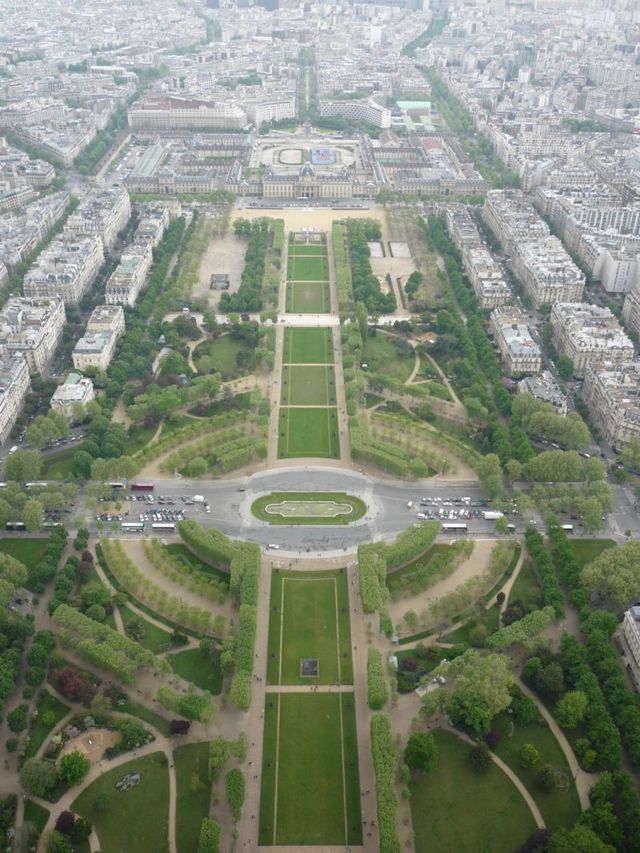 Widok z wieży Eifla na Pola Marsowe