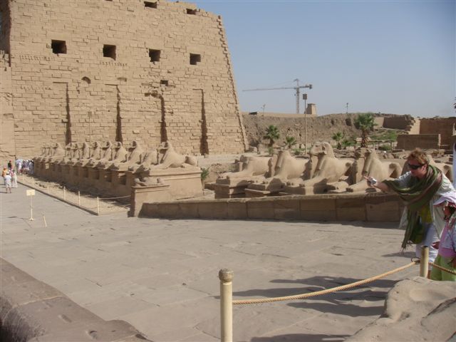 Do świątyni Amona od strony Nilu do pierwszego pylonu prowadziła aleja procesyjna z 40 sfinksami o głowach barana